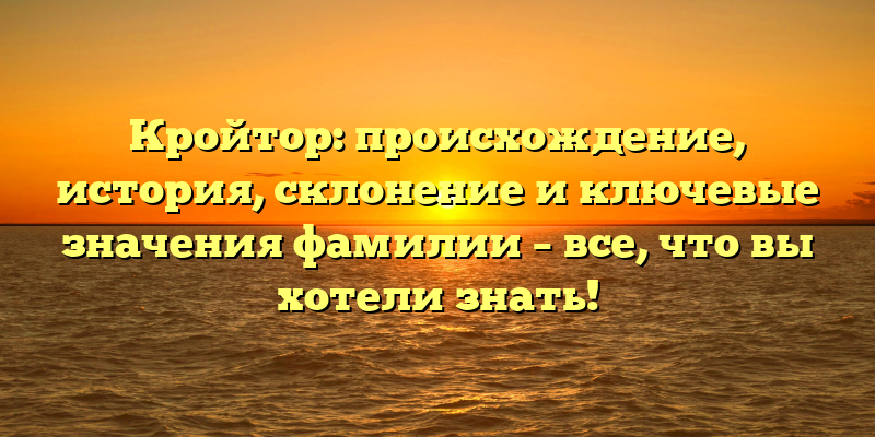 - Кройтор: исследуем происхождение, историю и значение фамилии в деталях!