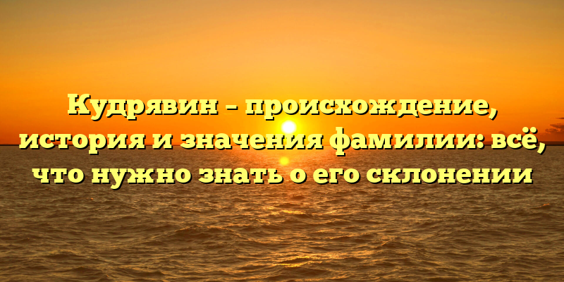 - Узнайте всё о происхождении и истории фамилии Кудрявин и правильном склонении: практические советы для создания безупречных документов и резюме