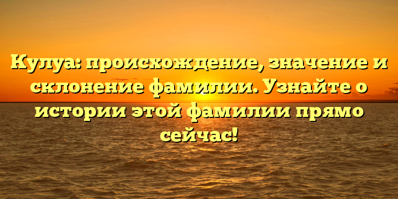 - Откройте тайны происхождения и склонения фамилии Кулуа: исследование истории этой фамилии.