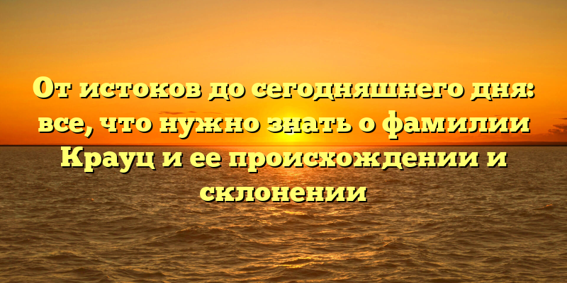 - Фамилия Крауц: История происхождения и правильное склонение — от первоисточников до современности