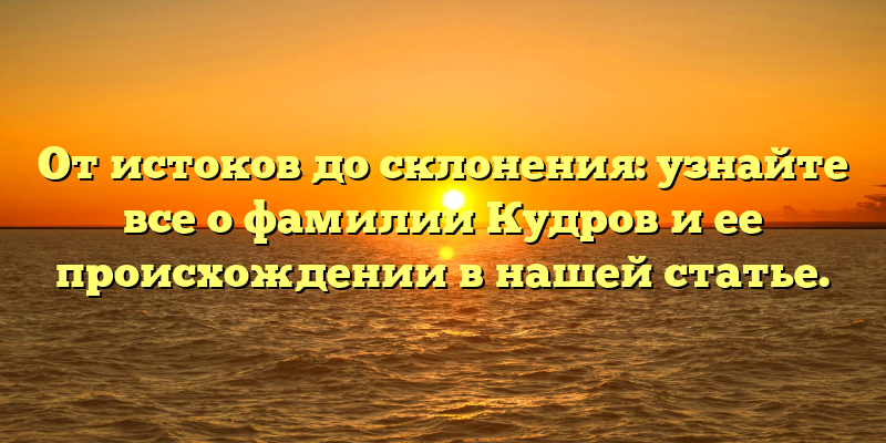 - Раскрываем тайны фамилии Кудров: история и происхождение от первобытных времен до современности
