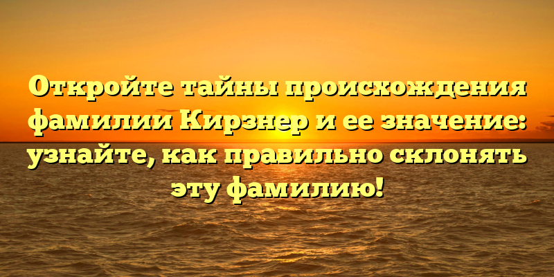 - Происхождение и значение фамилии Кирзнер: интересные факты и правила склонения