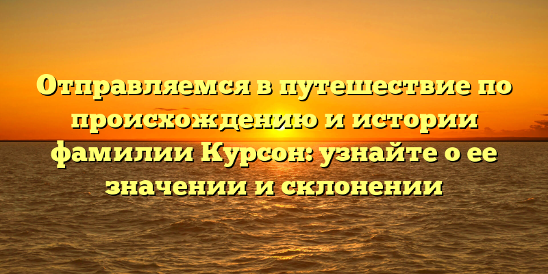 Исследование происхождения и истории фамилии Курсон: погружаемся в уникальную историю семьи и узнаем о значении и склонении ее имени