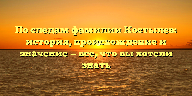 Когда мы говорим о фамилии Костылев, мы имеем дело с одной из самых известных фамилий в России и не только. Эта фамилия имеет давнюю историю, которая находит свои корни в древности.