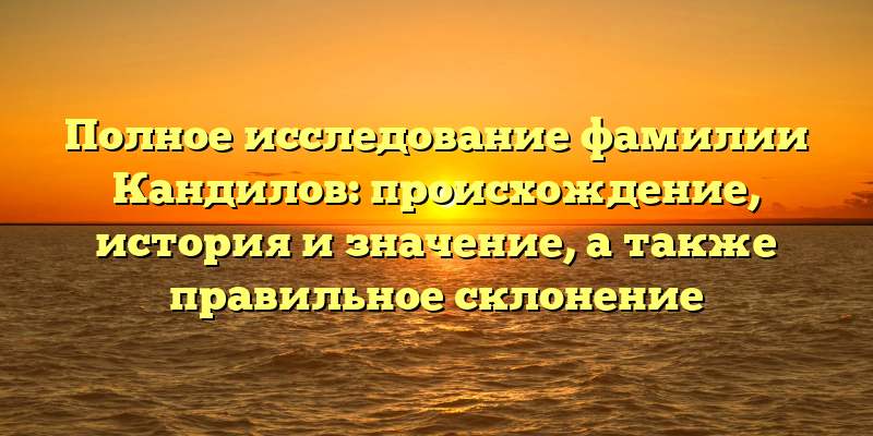 - Раскрываем тайны фамилии Кандилов: происхождение и история, значение и правильное склонение – все в одной статье!
