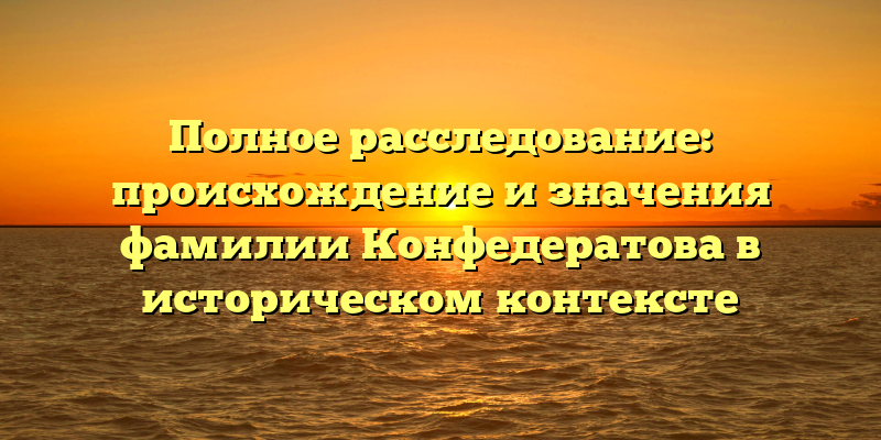 - Историческое расследование происхождения и значения фамилии Конфедератова: разбираемся в контексте важных событий прошлого