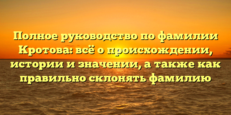 - Всё, что вы хотели знать о фамилии Кротова: история, происхождение и правила склонения