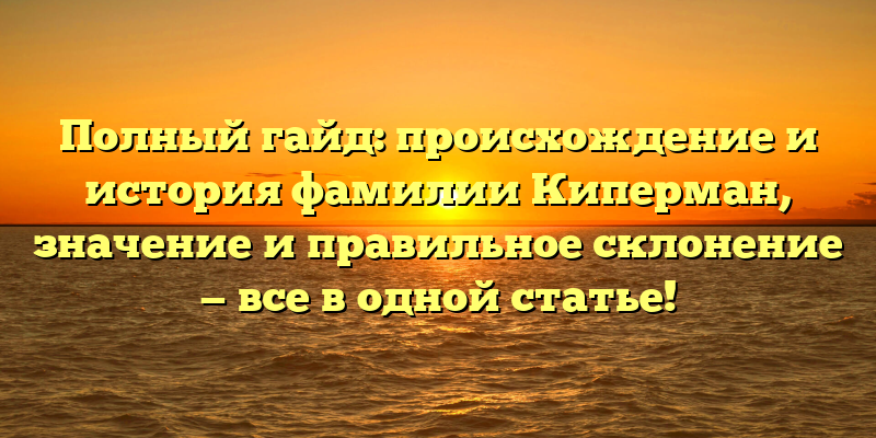 - Узнайте все о фамилии Киперман: история, значение и правила склонения — полный гайд в одной статье!