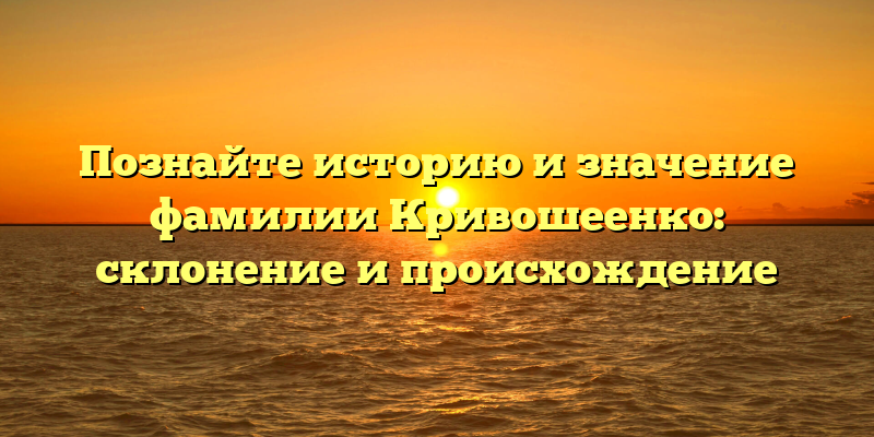 В данной статье мы рассмотрим подробнее историю и происхождение фамилии Кривошеенко, а также разберем ее склонение и значение.