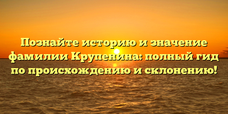 - Раскрываем тайны фамилии Крупенина: история, происхождение и правильное склонение — все, что нужно знать!