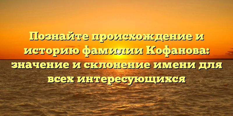 Раскрываем тайны фамилии Кофанова: происхождение, история и особенности склонения имени в одной статье