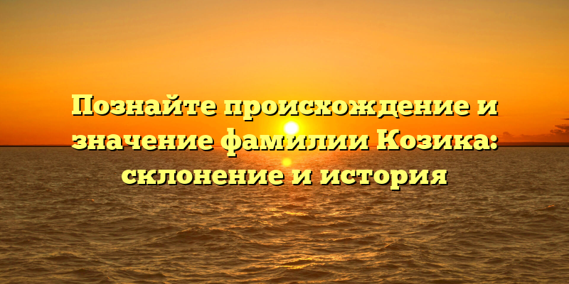 Возможно, вы сами или ваши знакомые имеют фамилию Козика, но не знаете происхождение и значение этой фамилии. В этой статье вы найдете ответы на все интересующие вас вопросы.