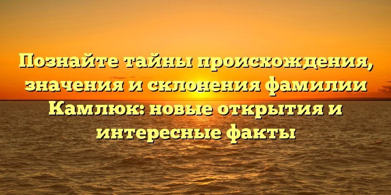 Очаровательные тайны фамилии Камлюк: открытия, значения и склонения.