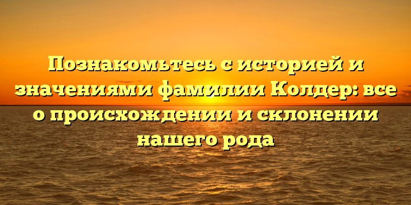 - История и значения фамилии Колдер: Рассказываем все, что нужно знать о происхождении и склонении рода