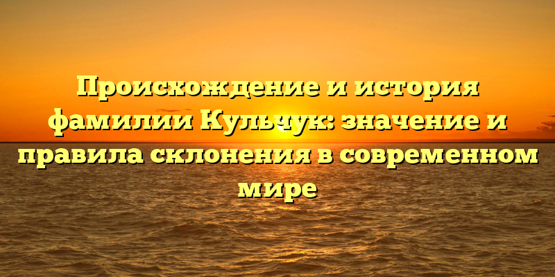 - История и значения фамилии Кульчук: всё, что нужно знать о происхождении и правилах склонения