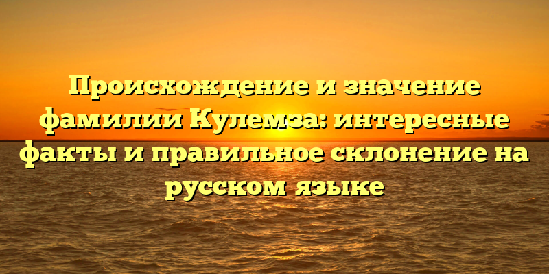 - Откуда произошла фамилия Кулемза и как её правильно склонять: увлекательные статьи
