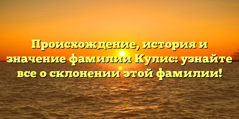 - Узнайте всё об истории и значениях фамилии Кулис: секреты склонения и происхождение этого фамилиарного имени