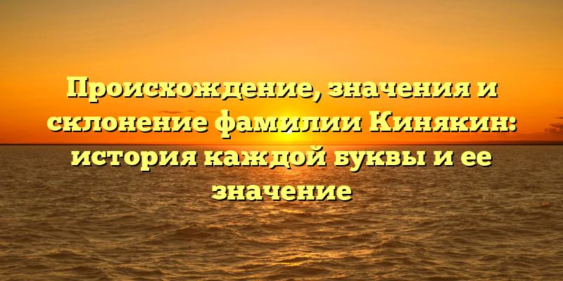 Сформирование фамилии Кинякин связано со многими историческими событиями и является интересным вопросом, вызывающим большой интерес у генеалогов и историков. В данной статье мы рассмотрим происхождение каждой буквы в этом слове, дав ее значение и покажем, как правильно склонять фамилию Кинякин в разных падежах.