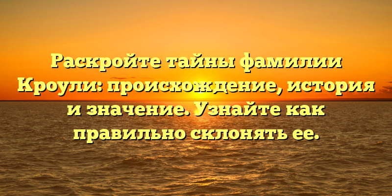 - Фамилия Кроули: происхождение, история и значение — раскрываем все тайны и даем советы по правильной склоняемости
