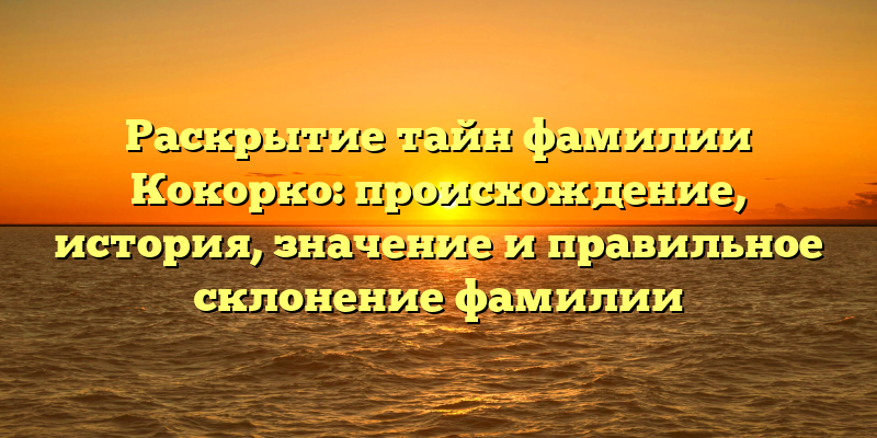 - Рассказываем все о фамилии Кокорко: история происхождения, значение и секреты правильного склонения