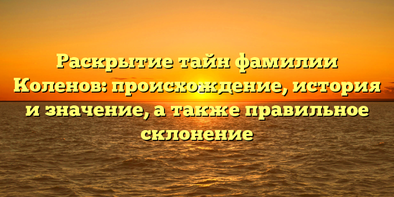 Открываем тайны фамилии Коленов: история, происхождение и значение, а также секреты правильного склонения.
