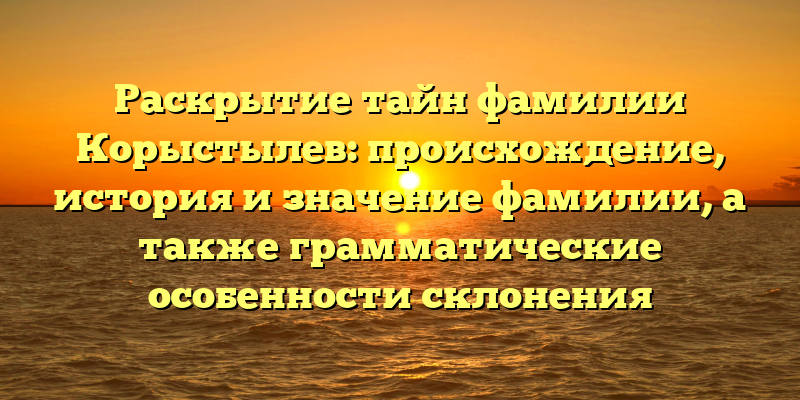 - Раскрываем тайны фамилии Корыстылев: история, происхождение и грамматические особенности склонения