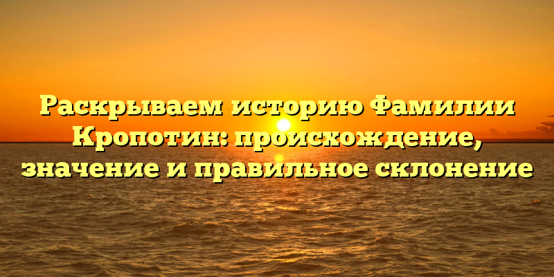 Узнайте всю правду об истории и происхождении фамилии Кропотин и научитесь правильно ее склонять