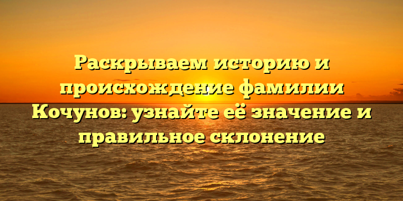 - Проверенная история фамилии Кочунов: определите ее происхождение, значения и правильное склонение