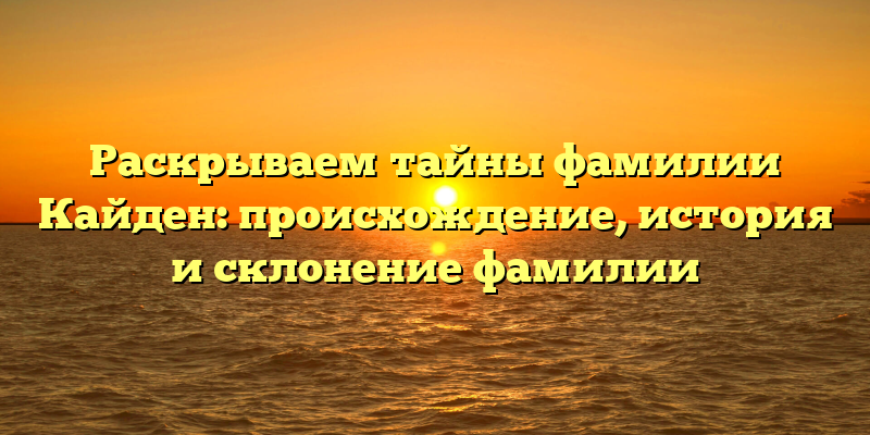 - Исследуем происхождение и историю фамилии Кайден: узнайте все тайны и склонение этой фамилии