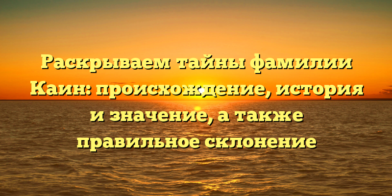 Фамилия Каин: открываем происхождение и значение, а также узнаём правильное склонение — полный и информативный SEO-заголовок, включающий в себя основные ключевые слова и фразы, которые будут интересным пользователю, либо исследователю данного тематического направления.