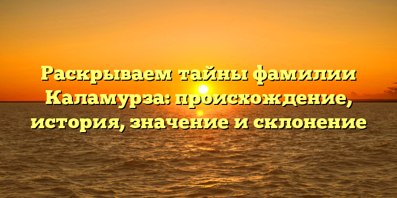 - Корни фамилии Каламурза: история происхождения и таинственное значение в родословной