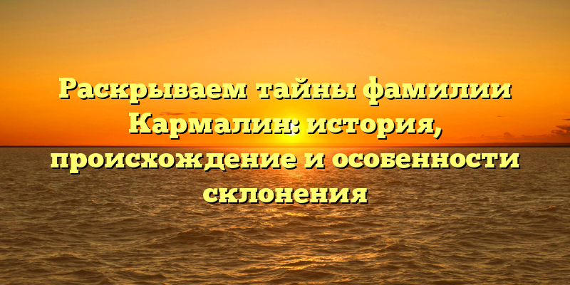 Кармалин: Раскрытие Истории и Тайн Загадочной Фамилии в Уникальном Расследовании