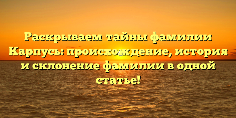 - Узнаем все о фамилии Карпусь: история, происхождение и правильное склонение в одной статье!