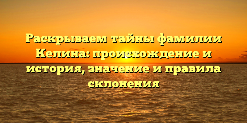 Загадочная фамилия Келина: раскрытие происхождения и истории, лингвистическое значение и правила склонения.