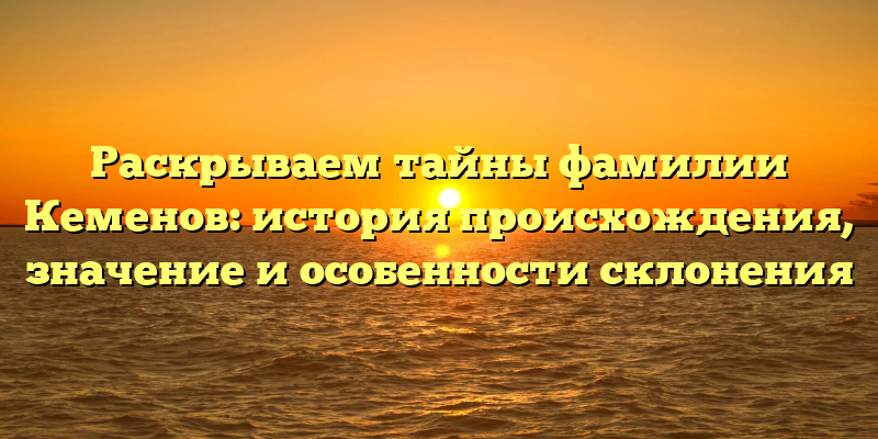 Фамилия Кеменов является довольно распространенной в России, но многие из ее носителей не знают ее настоящего происхождения и значения. В этой статье мы попытаемся раскрыть тайны этой фамилии и расскажем об особенностях ее склонения.