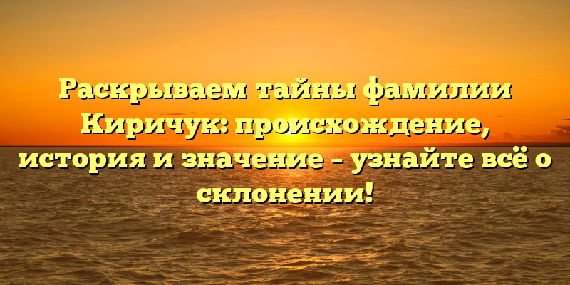 - Исследуем происхождение и значение фамилии Киричук: раскрываем тайны склонения и истории семьи