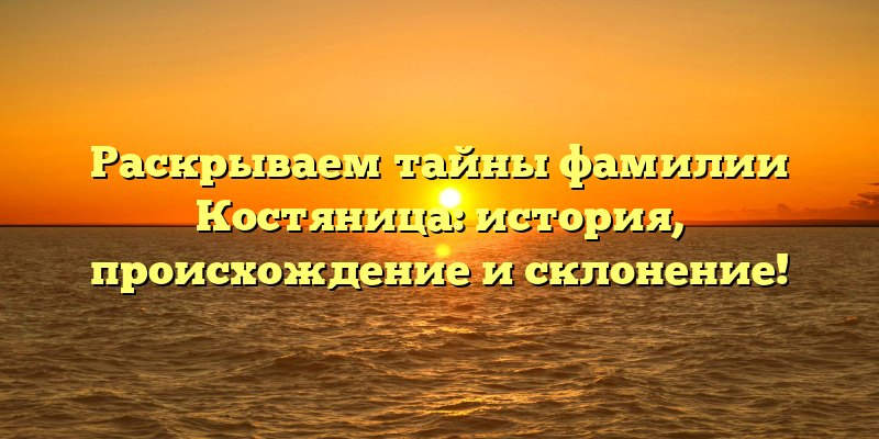 - Фамилия Костяница: происхождение и склонение, исторические тайны раскрыты!