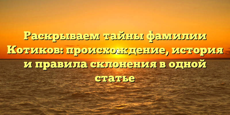 - Фамилия Котиков: происхождение, история и правила склонения — все, что вы хотели знать