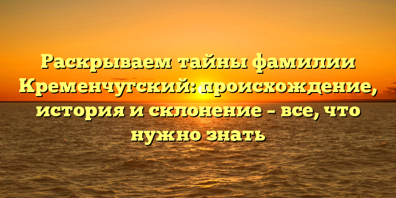 Открываем все тайны фамилии Кременчугский: происхождение, история и правильное склонение — читайте здесь