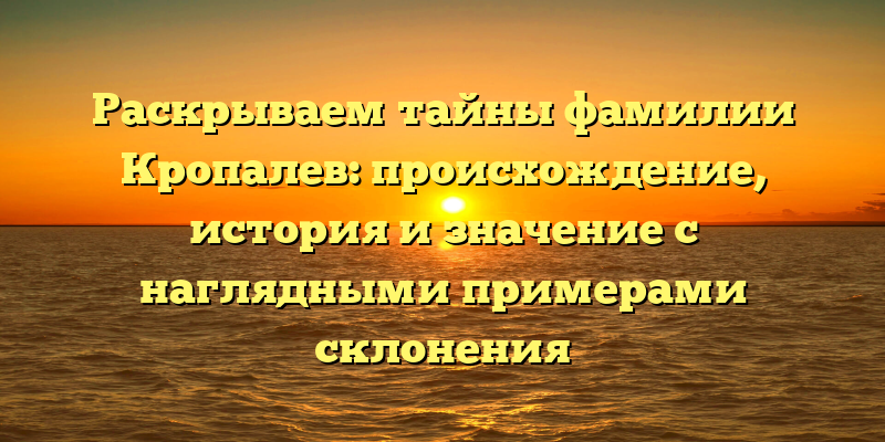 - Фамилия Кропалев: происхождение, история и значение — все, что вы хотели знать с примерами склонения