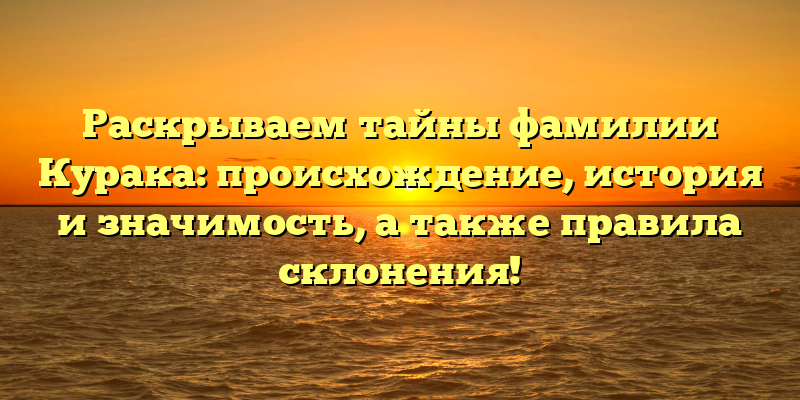 - Фамилия Курака: происхождение, история и правила склонения — интересные факты и секреты!.
