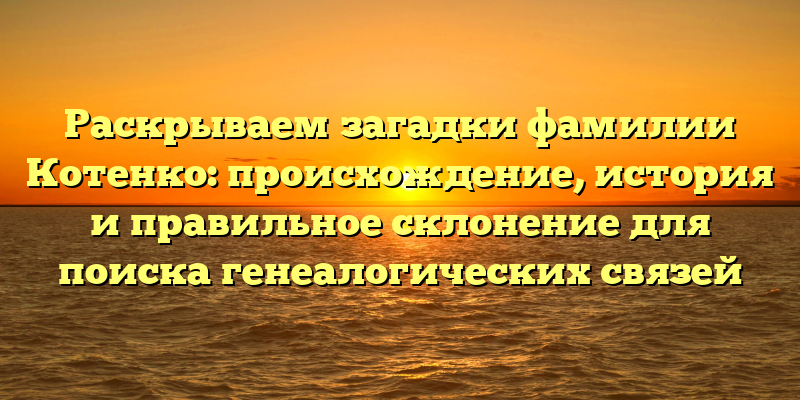 - Загадки фамилии Котенко: исследуем происхождение, историю и правильное склонение для успешного поиска генеалогических связей