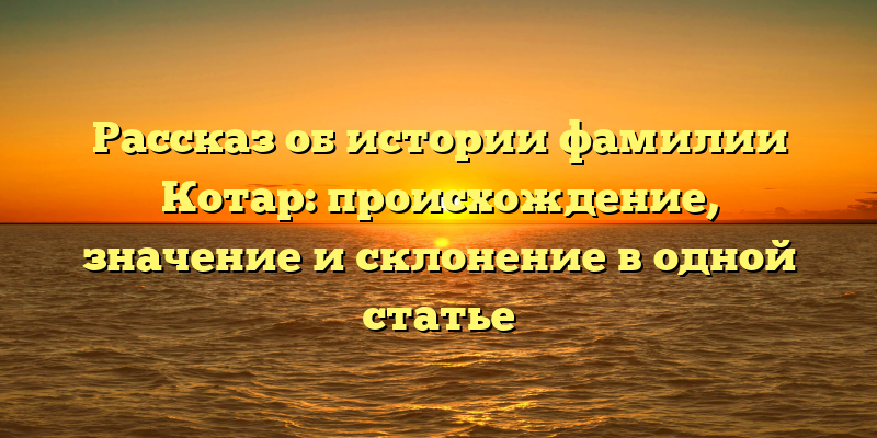 - История фамилии Котар: происхождение, значение и склонение — все об этом в одной статье!