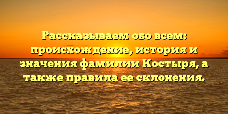 - Исследуем происхождение и историю фамилии Костыря, а также делимся правилами склонения: все, что нужно знать!