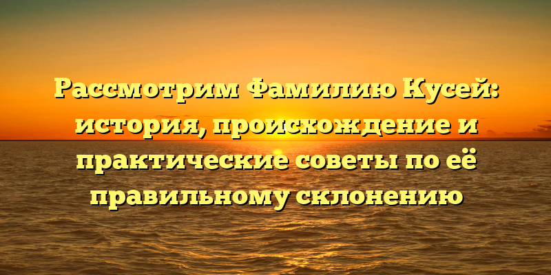 - Фамилия Кусей: исследуем историю, происхождение и подробнее узнаем о правильном склонении для эффективной коммуникации