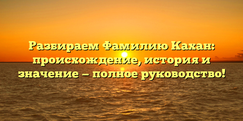 В этой статье мы попытаемся разобраться в происхождении фамилии Кахан, узнаем ее историю и значение, чтобы лучше понимать эту фамилию и ее носителей.