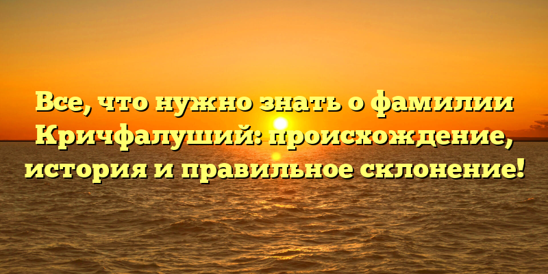 - Раскрываем тайны фамилии Кричфалуший: происхождение, история и склонение для правильного использования.