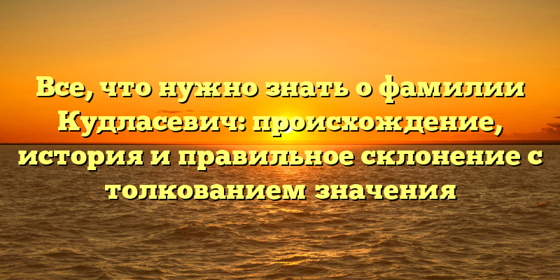 - Фамилия Кудласевич: происхождение, история и правильное склонение с подробным описанием значения