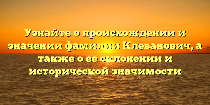 Исследование фамилии Клеванович: происхождение, склонение и историческая значимость