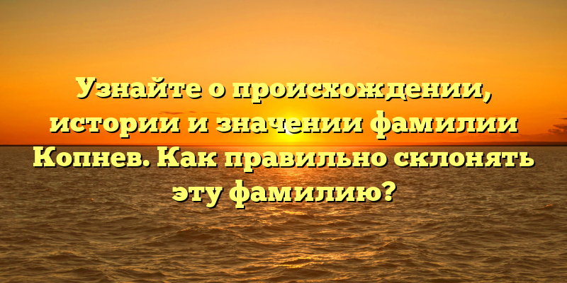 - Раскрываем тайны фамилии Копнев: происхождение, история и правильное склонение.